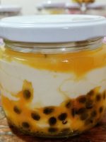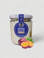 - El kéfir griego sabor maracuyá, es un producto vivo de leche fermentada con nódulos de kéfir y maracuyá, elaborado de manera artesanal.